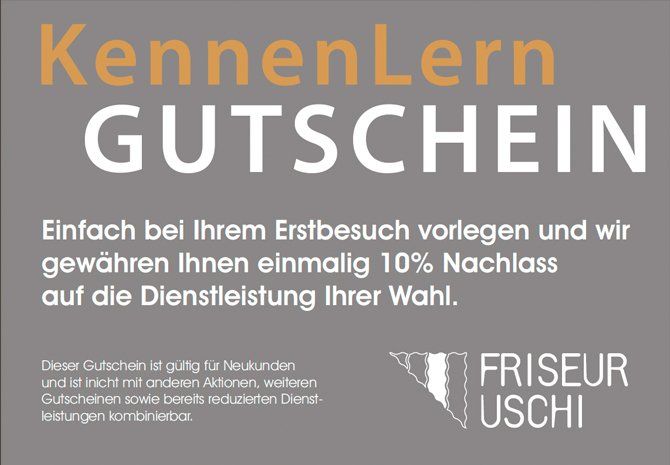 Das freut uns sehr! Um Ihnen den Eintritt zu Ihrem neuen Lieblingsfriseur noch leichter zu machen gewähren wir Ihnen mit unserem KennLernGutschein 10% Rabatt auf die Dienstleistung Ihrer Wahl.